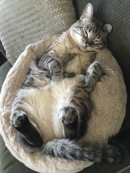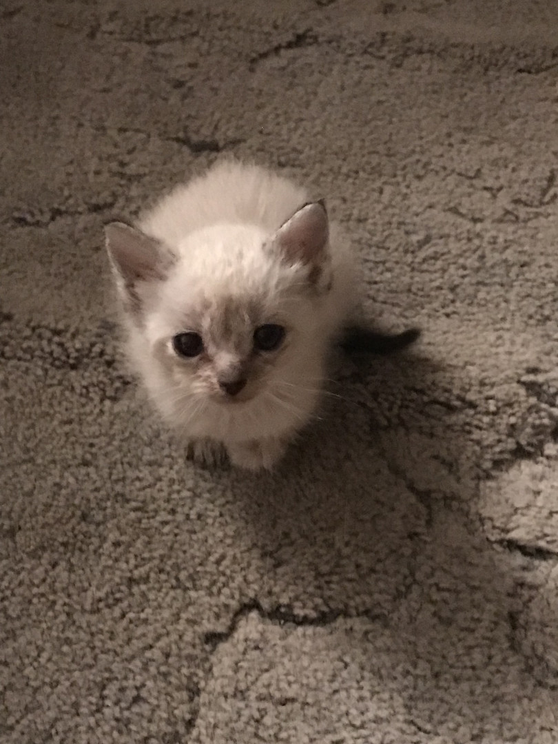Got her as a itty bitty with needing bottles. My juvenile male dog mauled her I nursed her back to health with IV fluids. She is 2