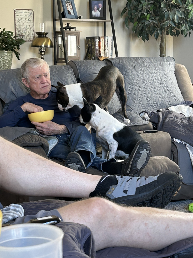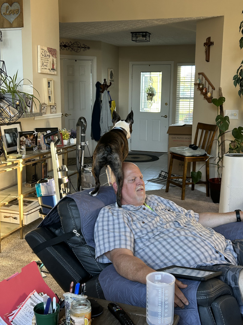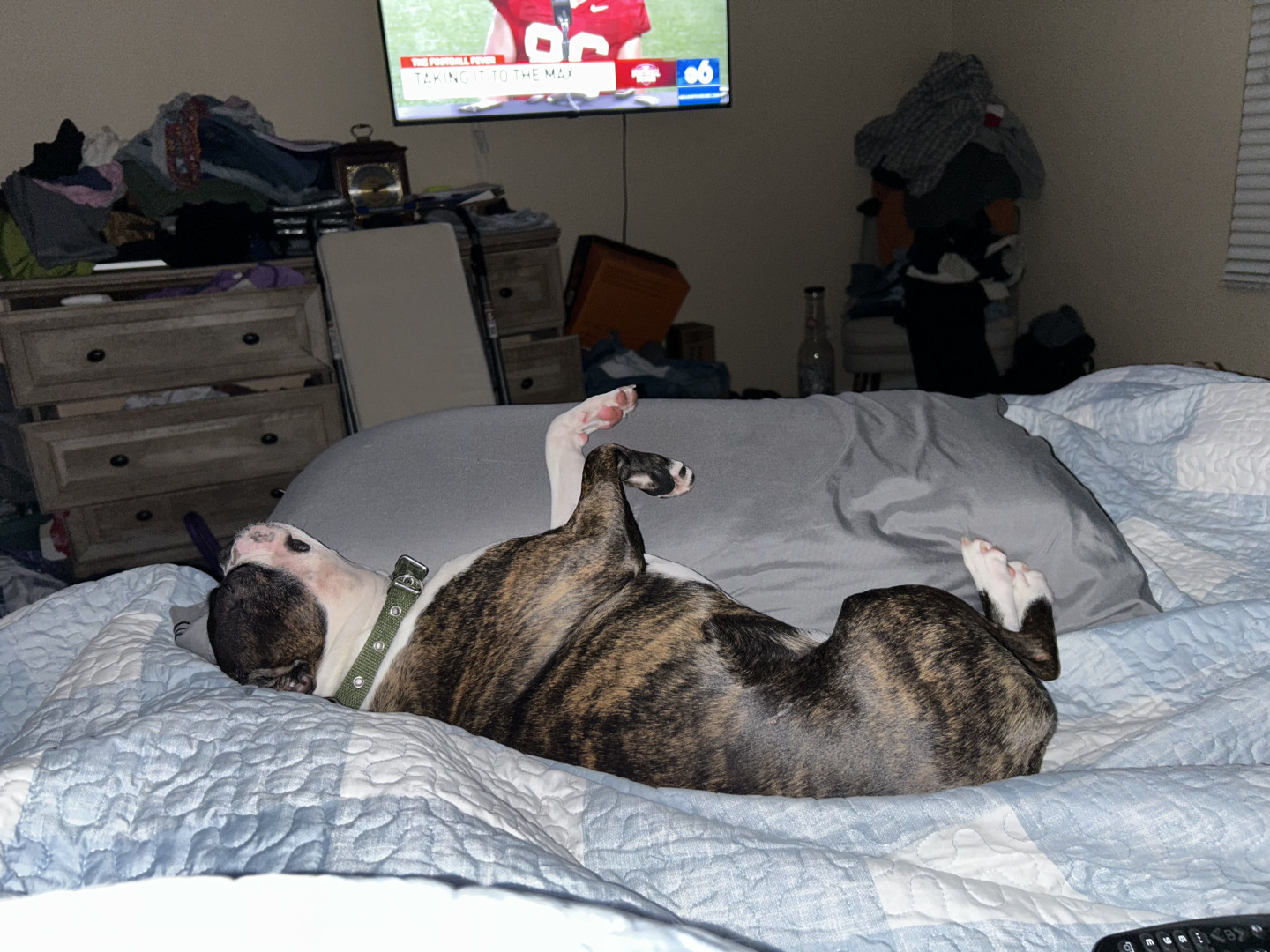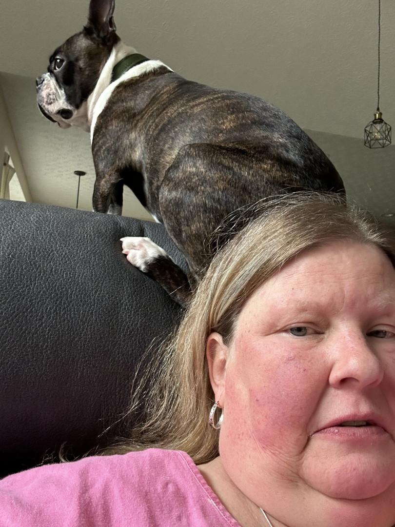 For being a larger Boston Terrier his athleticism & strength blows peoples minds. I’d love to get him into agility courses. He likes to sits on your shoulder or head and lays on the top of a recliner like a cat. Also he can jump to catch something thrown to him and uses his front paws like hands to catch it.