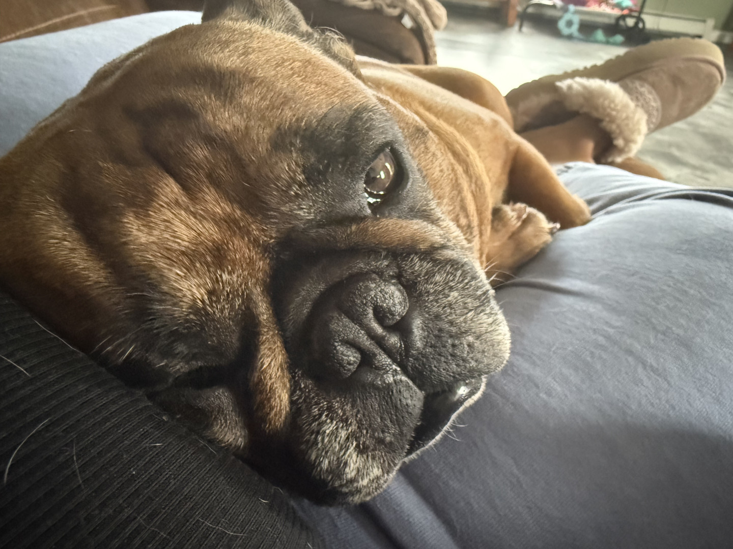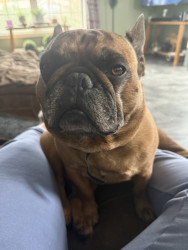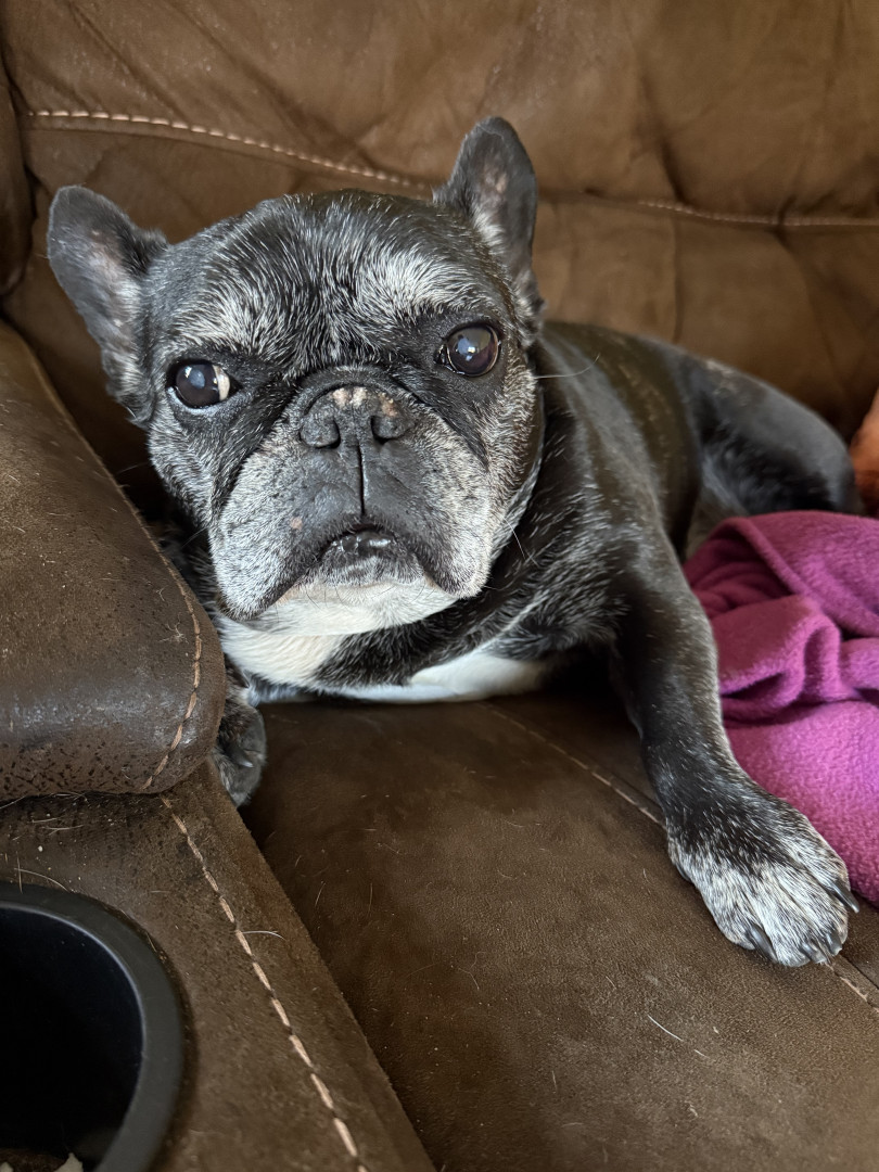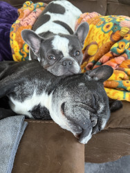 All 3 are very different. All frenchies. Lulu is 14, Cooper is 5 and Peaches is 1.
