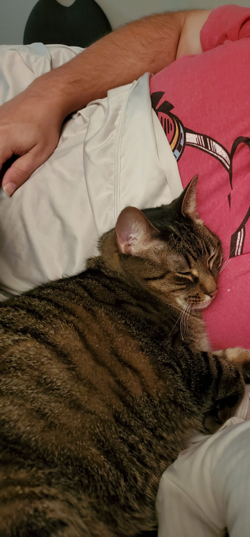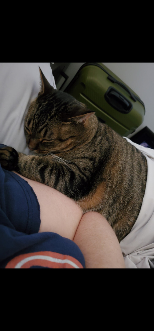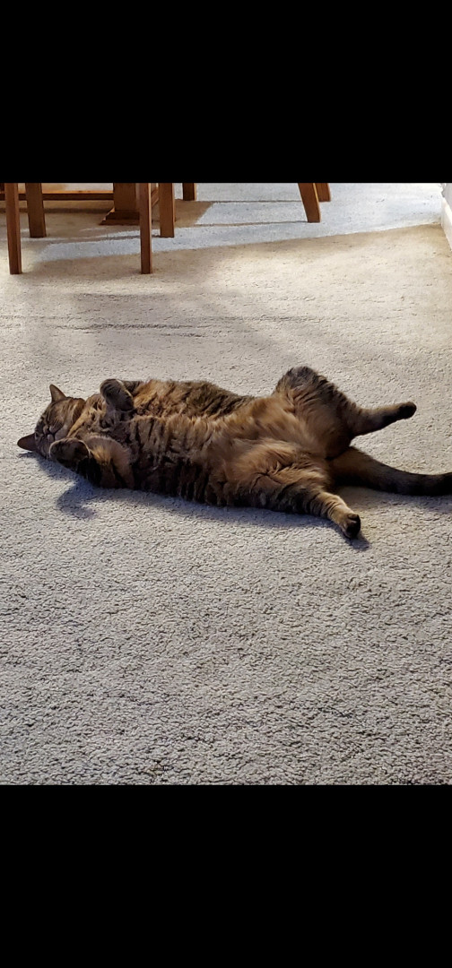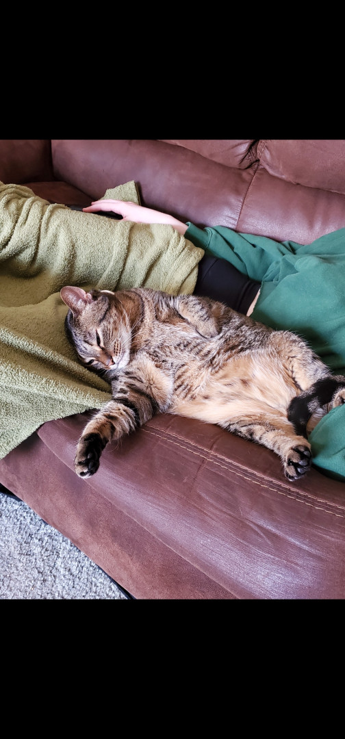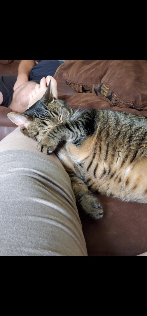 AB is a cuddly big girl who loves to be scratched and cuddled at times as well as snuggling up in her sister's bed! Just a lovable big girl!