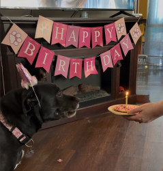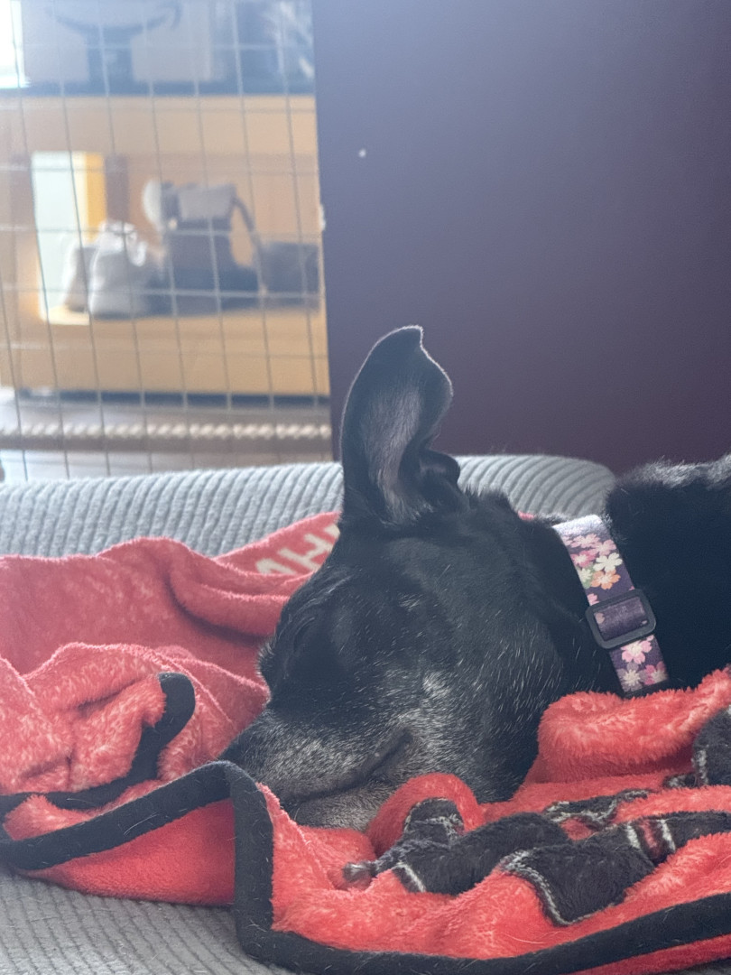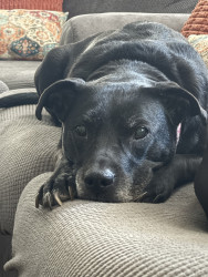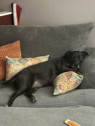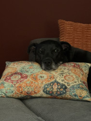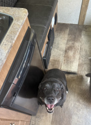 Abby is obsessed with being pet! OBSESSED! She doesn’t play with dog toys or play fetch. She doesn’t want to roughhouse, or play, she just wants to be pet and rubbed on all while she thanks you by giving you unrelenting kisses at the same time! She will whine, growl and even bark to let you know she needs belly rubs. She will grab your arm with one or both paws if you have stopped petting her before she is ready for you to stop. She is a girl who knows what she wants!