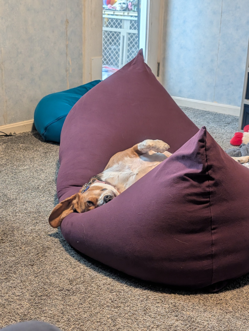 Abby is such a loveable snuggle bug. Loves children and playing fetch, keep away, tug of war. Also one sneaky food thief...