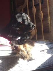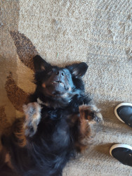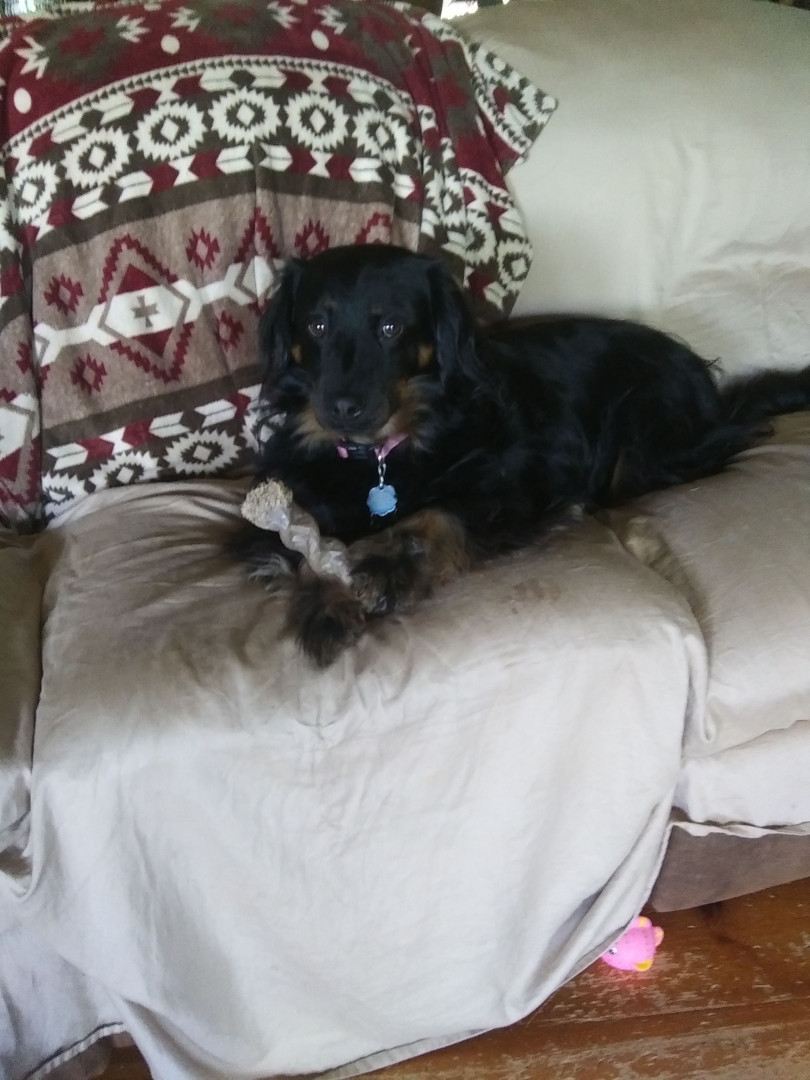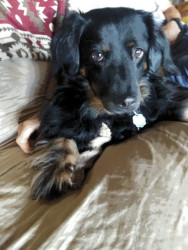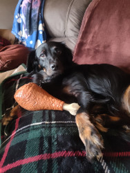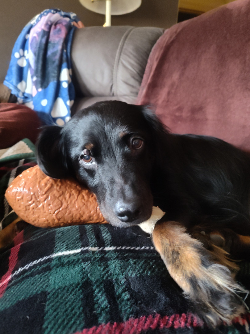 Abby is a Dashund New England spaniel mix, who absolutely loves food and cuddles. She also absolutely adores squeaky toys.