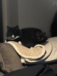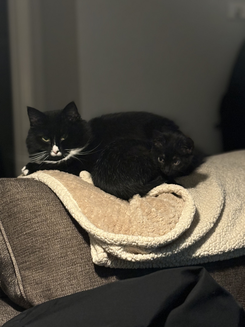 She’s sweet, fun, loving and will chirp your ear off. Shes got big sister energy and takes care of her little sister.