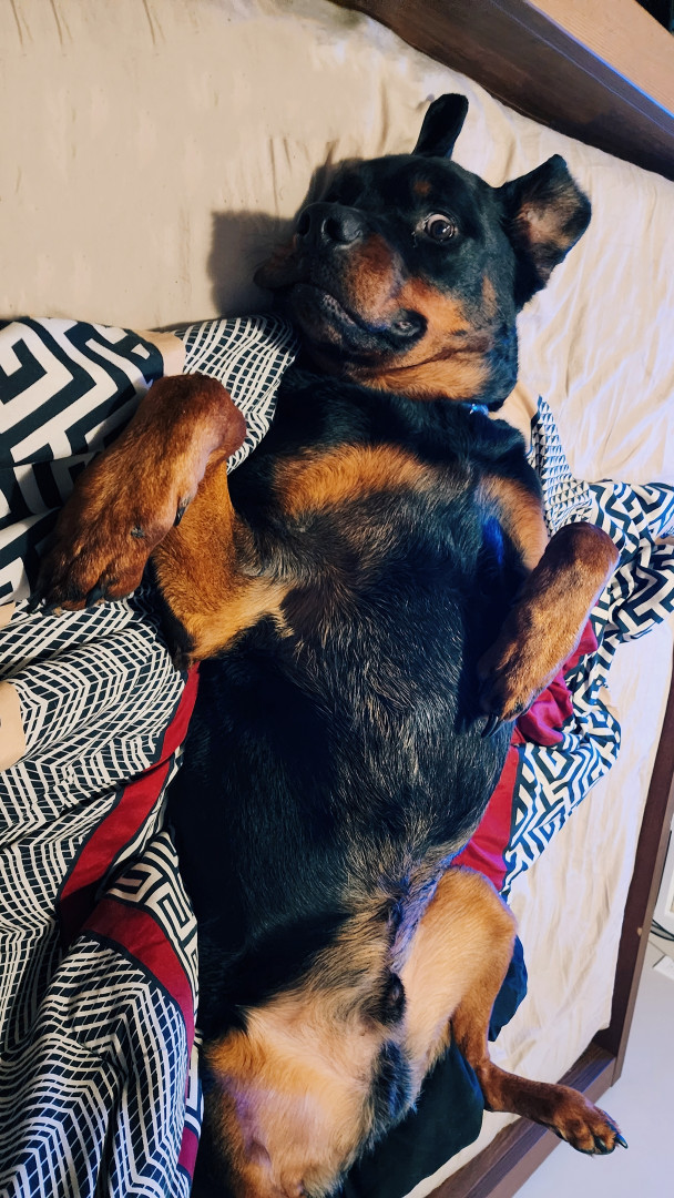 Abe brings alot of joy and fun to the people in his life and is a great example of a happy go lucky dog.