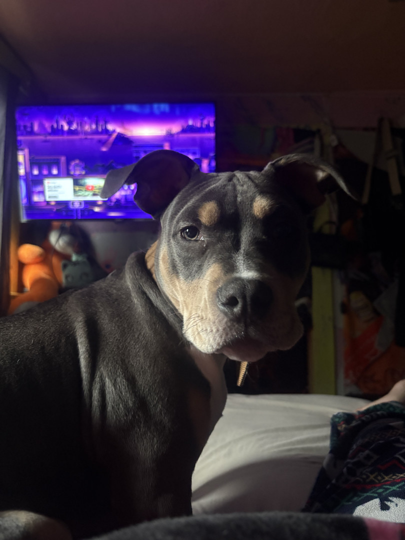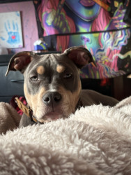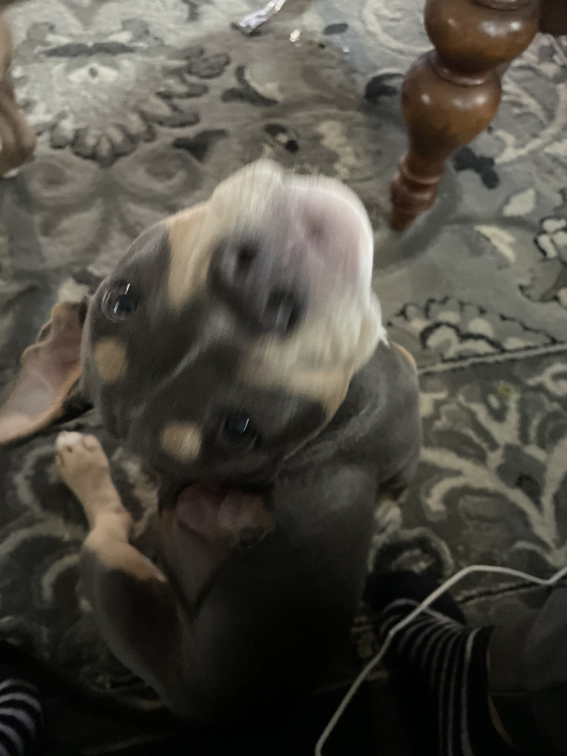 Ace is a very playful, silly, outgoing, courageous, intelligent boy! he loves to play with his buddies Lola and Nova he’s a blue tri bully!