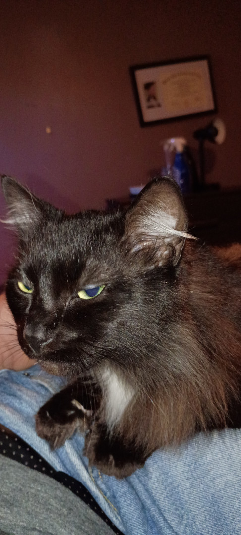 Gemma is shy but so loving and she loves to act as an "adult" but has a weakness to toilet paper rolls. Physically though, it's her eyes, in contrast to her fur. Sighhhhhh