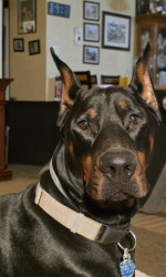 A big spoiled boy who loves traveling and meeting people. Akiva loves kids too and is a great representation of a Doberman Pincher.