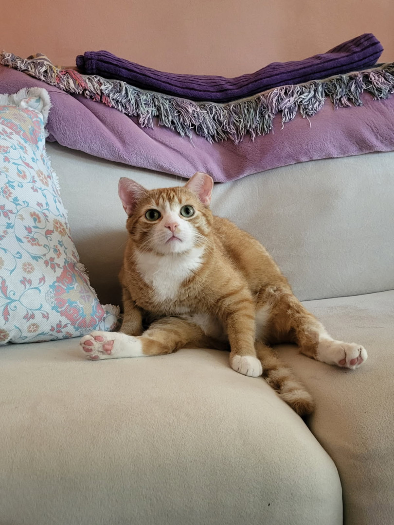 Aside from the flexibility he (clearly) shows 😼 Alan’s most unique quality would be how well he adjusted to people loving him. He went from a little fella with squinty morning eyes, that followed with a hiss - to a full blown gentle, love machine. His favorite toys are a dead giveaway for his gentle and kind soul 💙