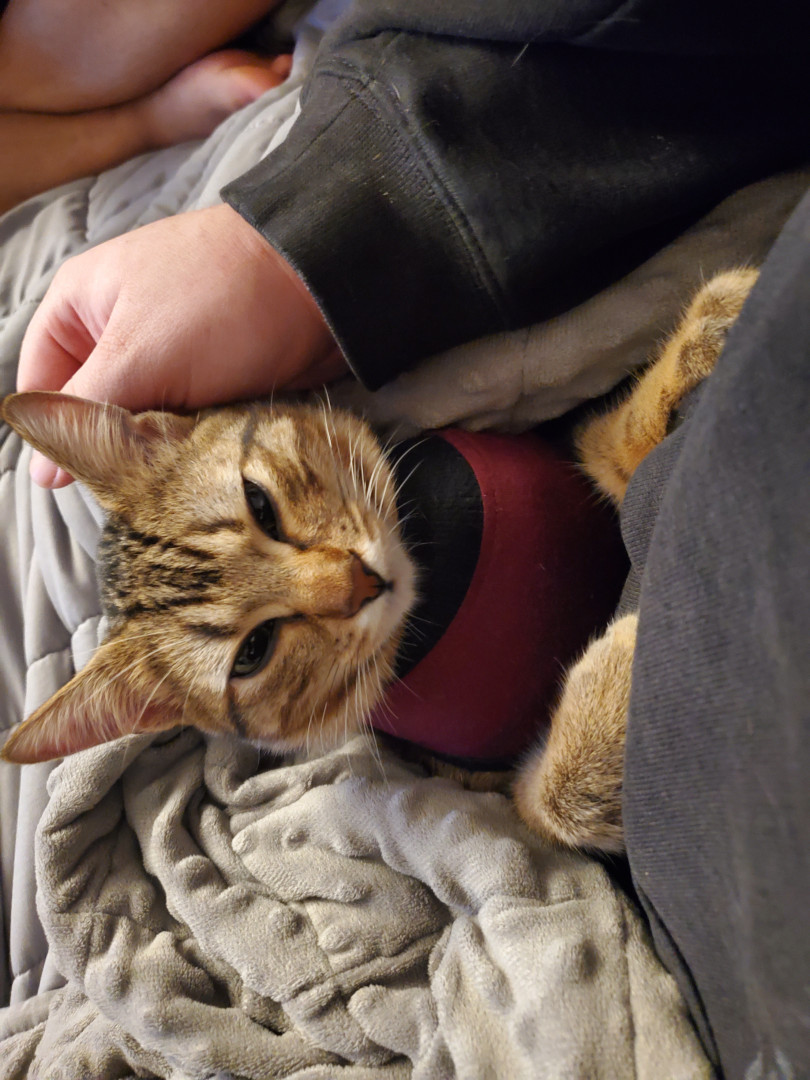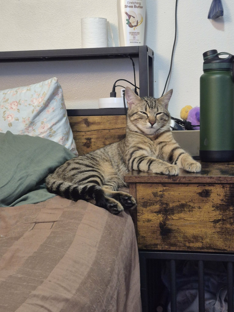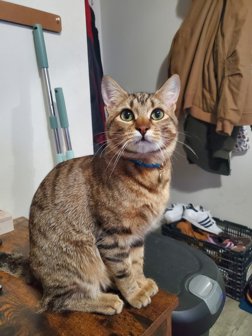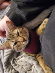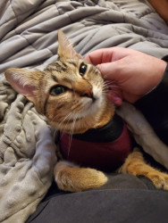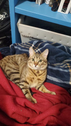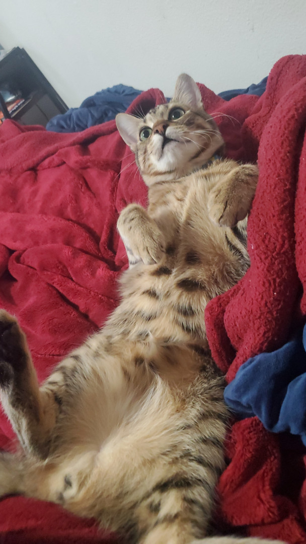 He's a big, playful baby, a clingy, purring menace who loves cuddles, bottle caps and play-fights, and is insanely smart for his age!