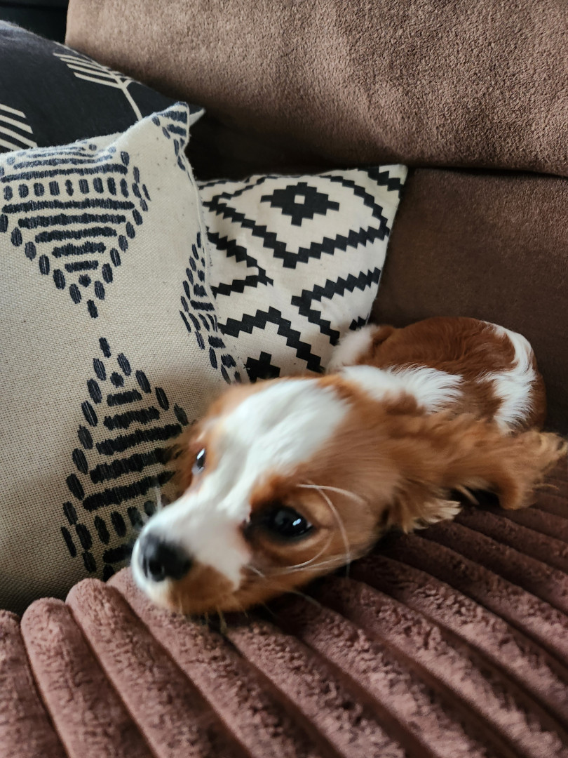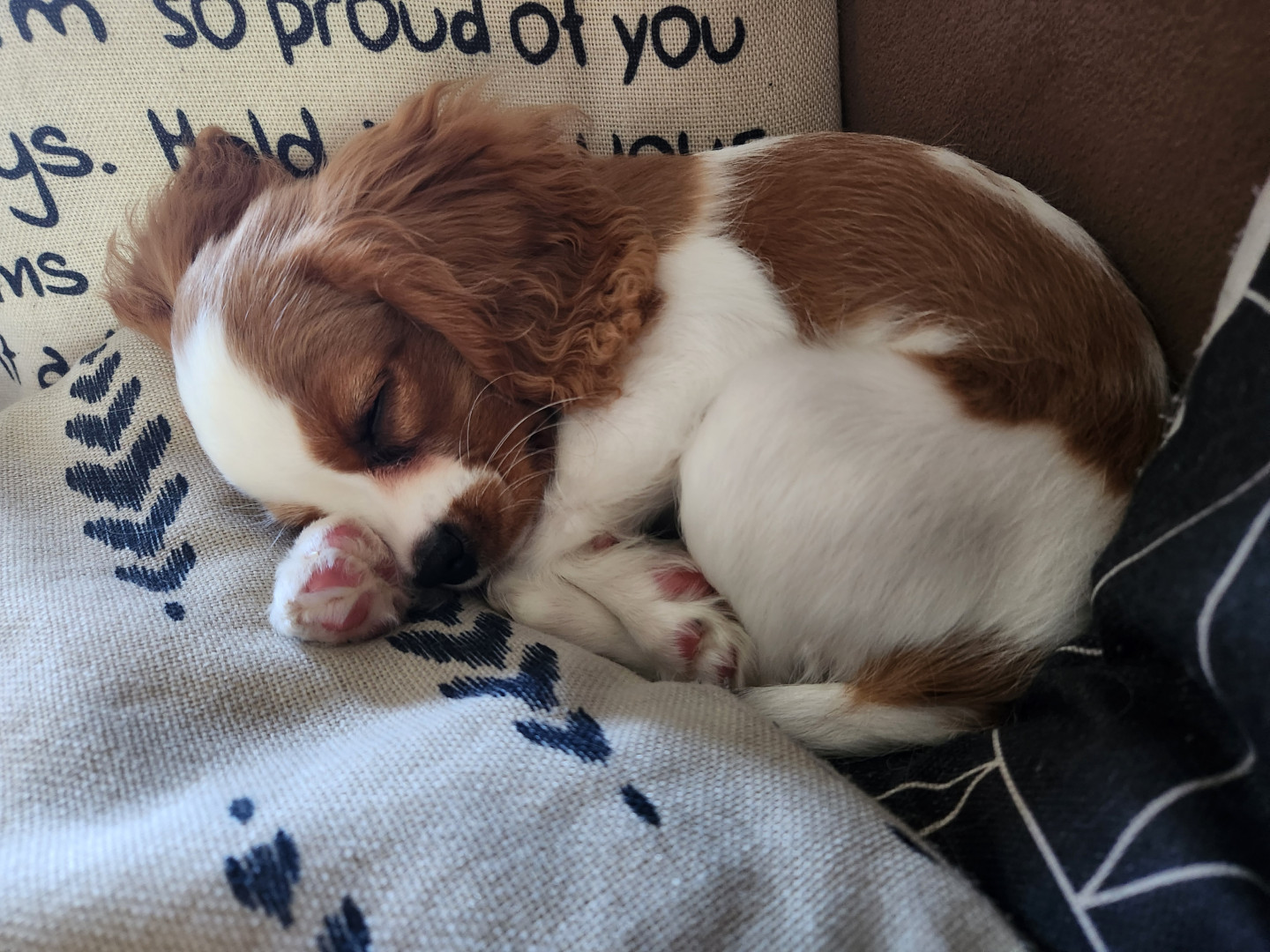 My 5 month old Cavalier King Charles Spaniel. Smart and beautiful girl! Please pick her! She learned how to sit in 3 days! 12 weeks old!