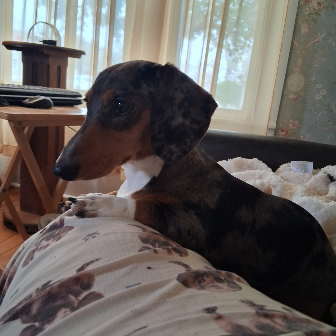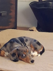 Ali is a mini dachshund. She is perfect. She doesn't tear up her toys and yet she loves to play with the toys and her siblings.