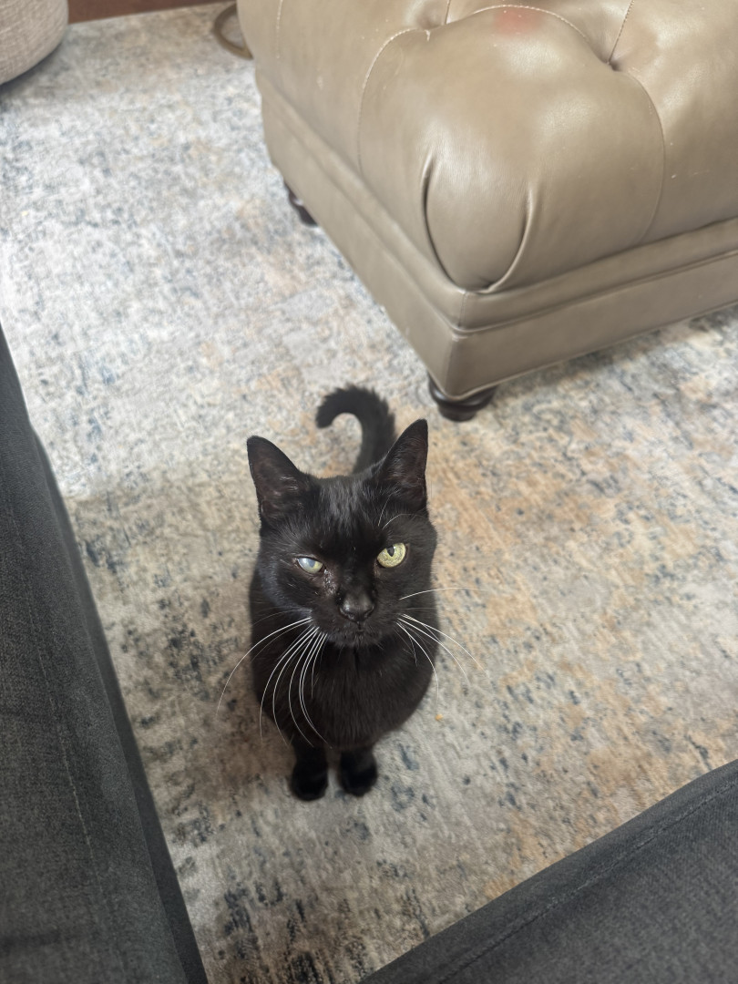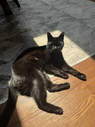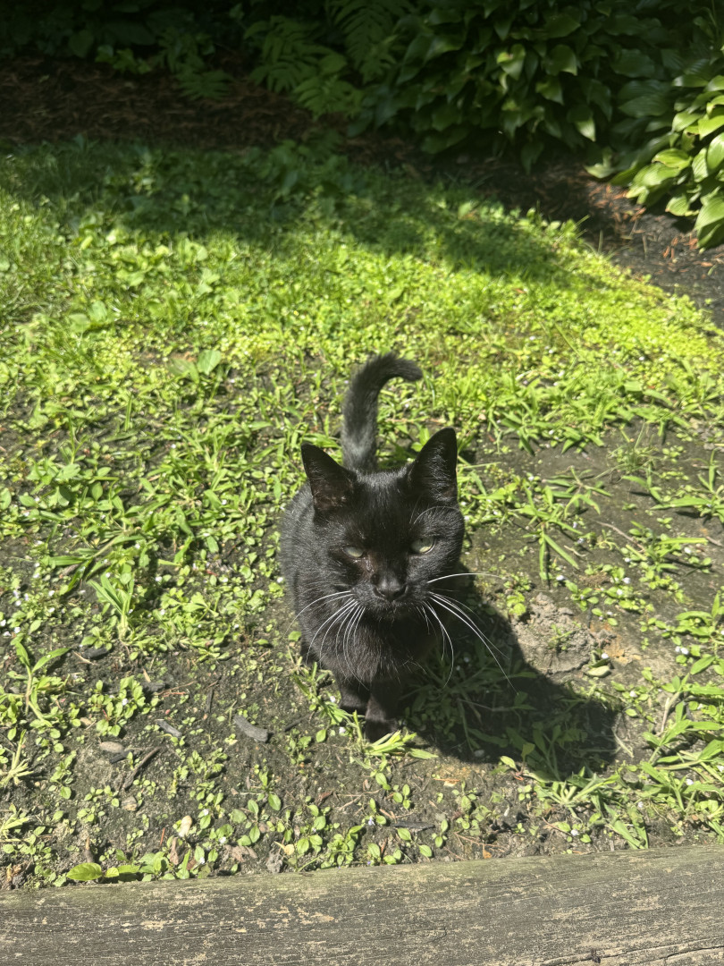 She is a domestic shorthair black cat. She is 12 years old and loves our backyard. She is the sweetest girl and loves everyone.