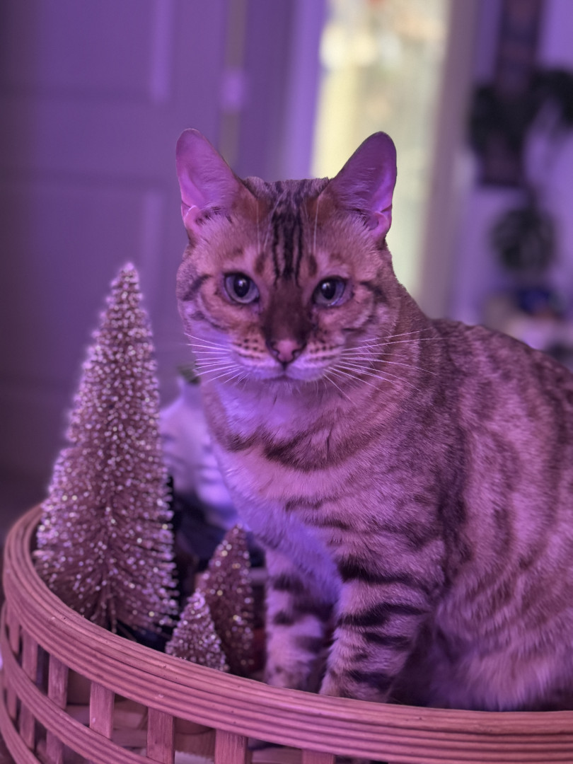Alrhea is a beautiful almost a year old bengal. She a rescue that my daughter Rachael brought home. Althea is like dog that play fetch .