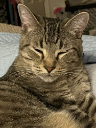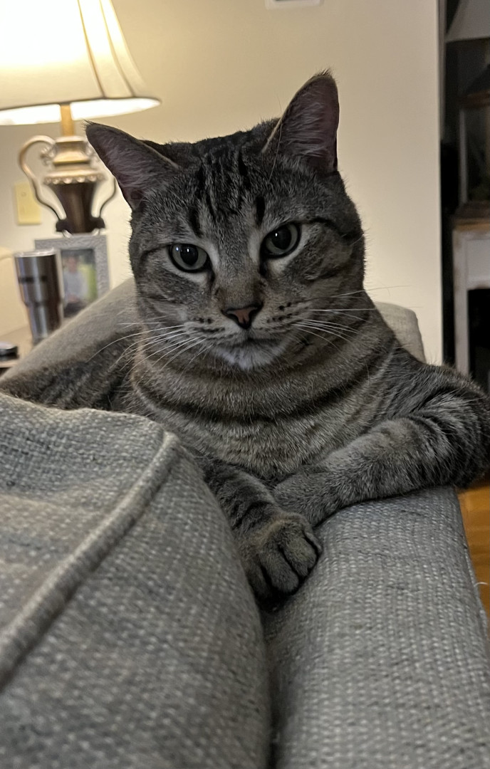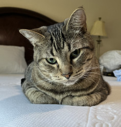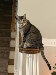 Alvin is not like most cats. He loves to be the center of attention. He’s always right up in the mix while we’re watching TV, cleaning, vacuuming or unloading groceries Alvin is always there. Humans are his people and that’s what makes him America’s Favorite.