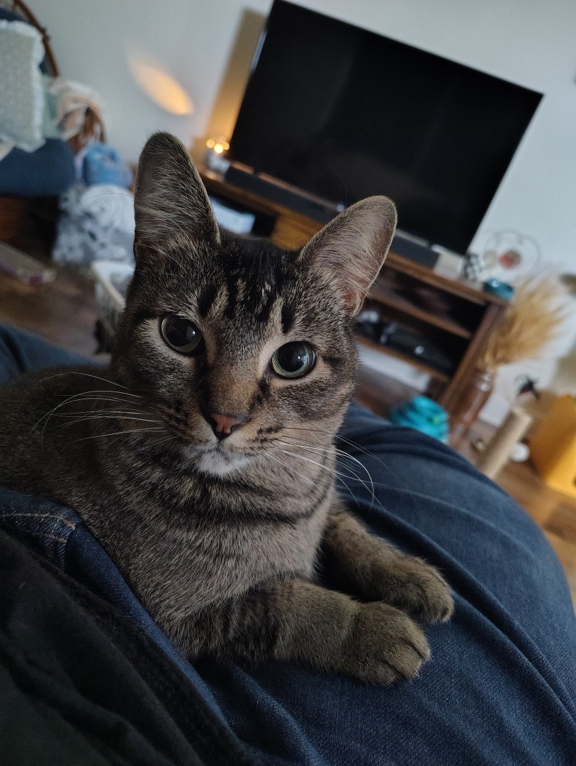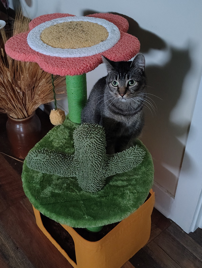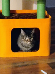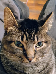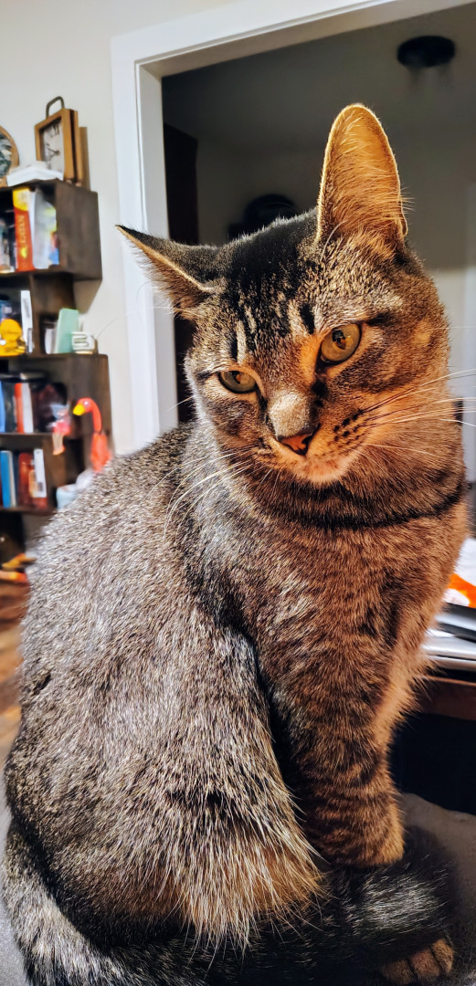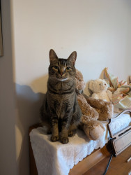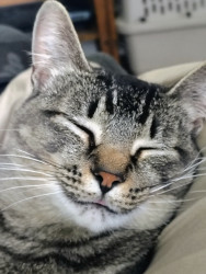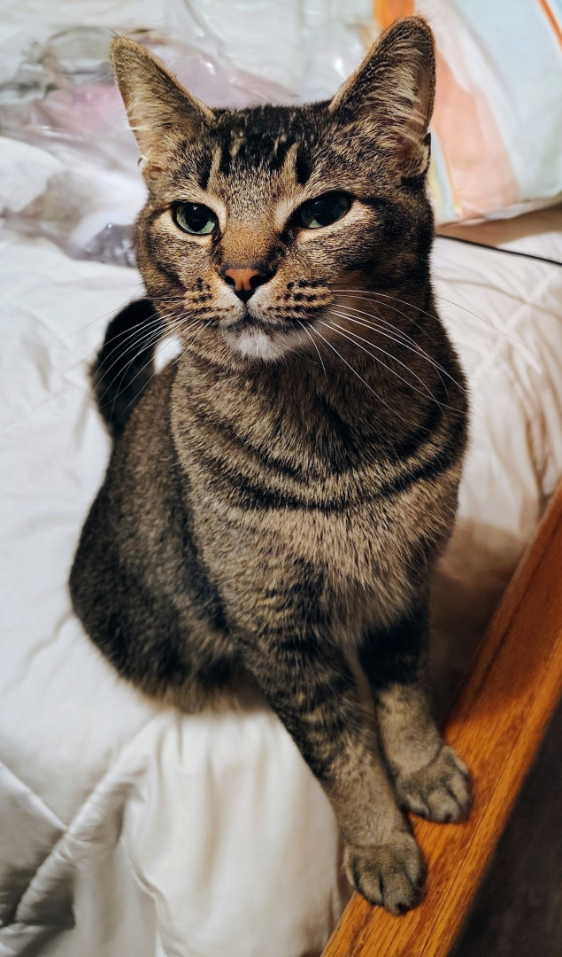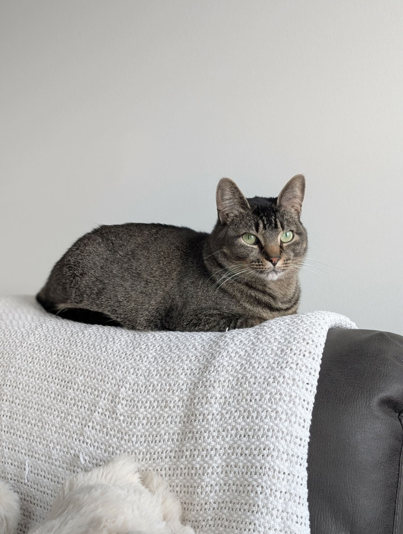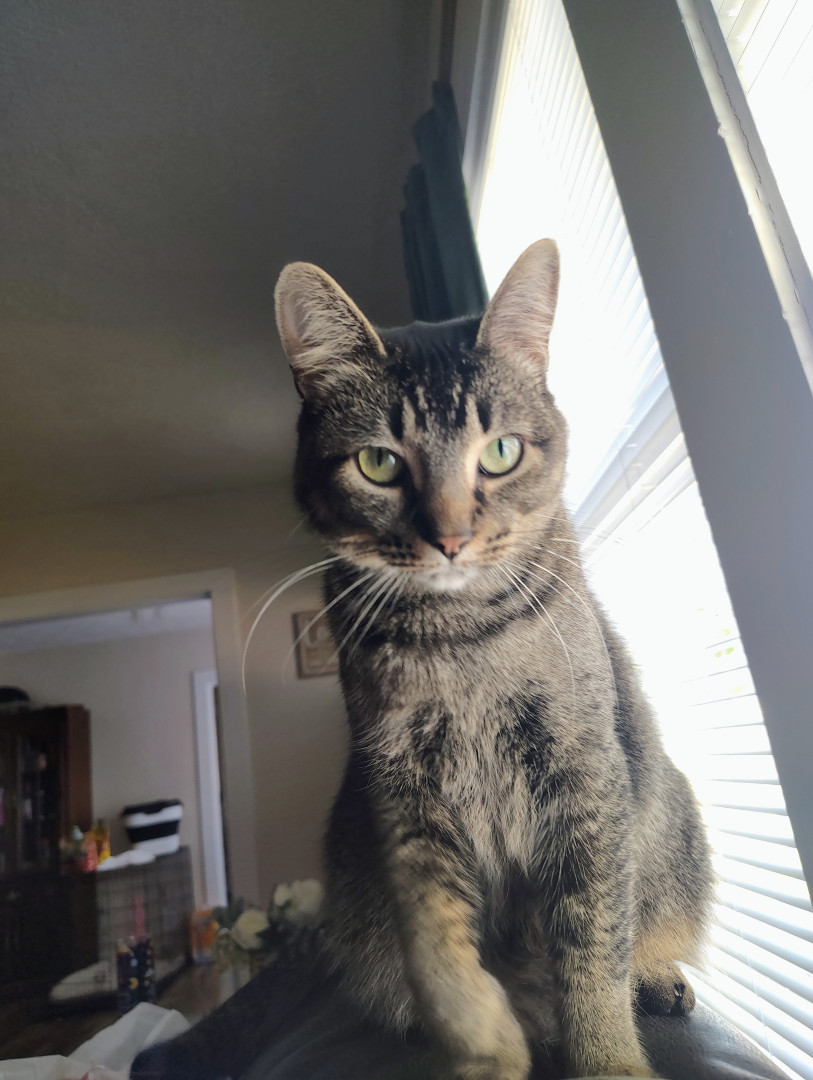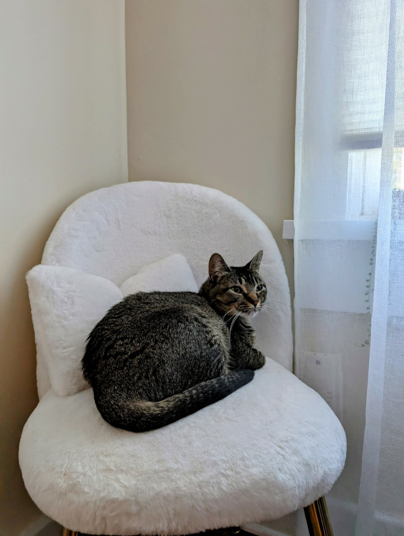 Angel is a sweet cat and always poses for photos. She's always caring and loves to be pet!