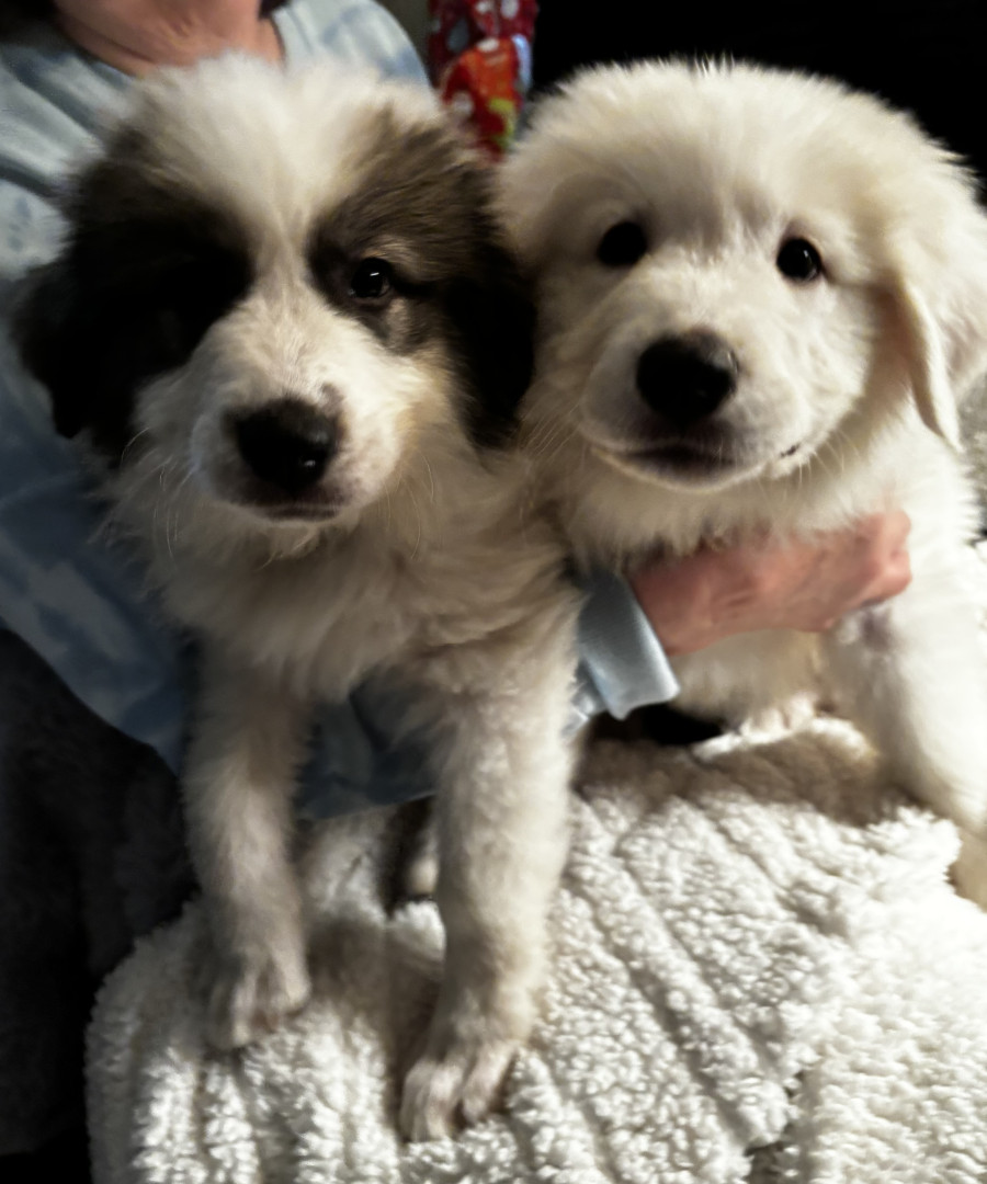 They are Great Pyrenees. They are now one year old. They are big dogs like big teddy bears.