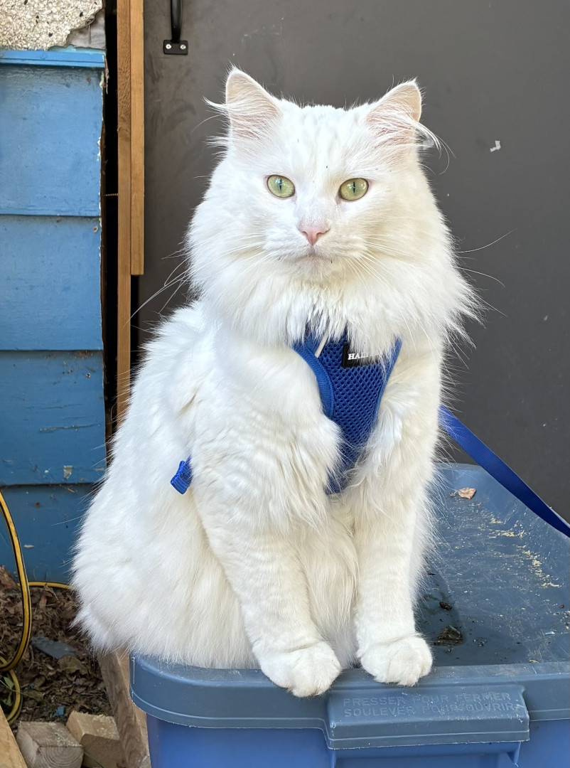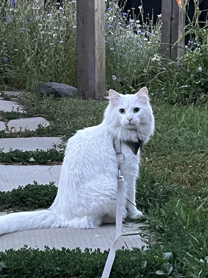 Angel is a very good cat. He’s beautiful ,well behaved. He loves being outside. He is gentle and loves attention.