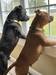 Learn MoreAngus has a very strong, solid rubber ball that he ‘tries’ to keep away from Ruby. Ruby has a hard red tractor from Tractor Supply and she is CONSTANTLY bringing it to us. They also play ‘fetch’ EVERY evening with our Chuckit, and they remind us every day when it is ‘time’.