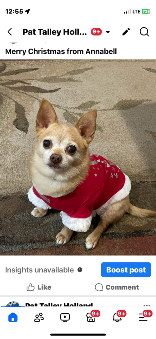 Annabelle is a very sweet Chihuahua. She beats the stereotypical Chihuahua. She loves belly, rubs and riding in the car.
