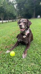 Annie is a silly, loving Labrador who loves to dress up and wear anything that we put on her. She loves to play fetch with her sister!