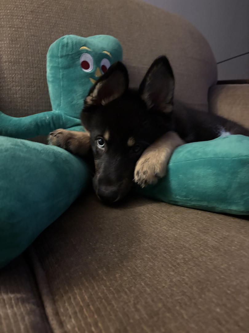 Annika is a german shepherd/ husky mix! She is just reaching 4 months and is the most chaotic little girl to be around!