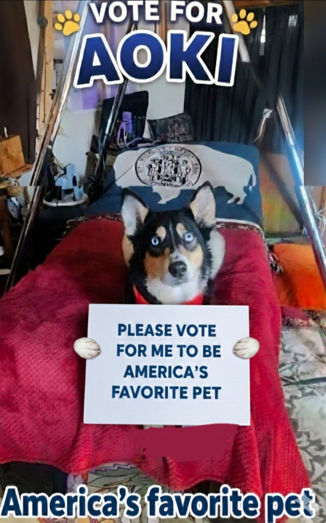 Vote for Aoki to be America's Favorite Pet with a tax-deductible donation supporting PAWS.org in their mission to help sick, injured, and orphaned animals. Limited-time: donation votes are doubled until Wednesday at 9PM PST.