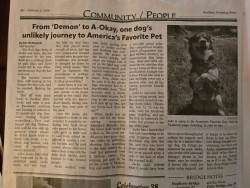 1 Because he's a rescue who had phobias and fears of people and fence aggression. 2 Because of time and love from the mail carrier he is now an amazing therapy dog. 3 Because he embodies the whole idea of getting a second chance. His name was Demon when I got him and now his name is A-OK . I just say everything's A okay around him. The I on the end is pronounced to e his name is actually Aoki which is Japanese for blue tree. it's pronounced with a long e on the end but I just call him a okay.