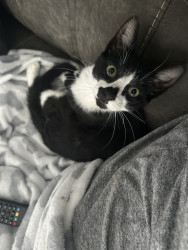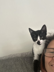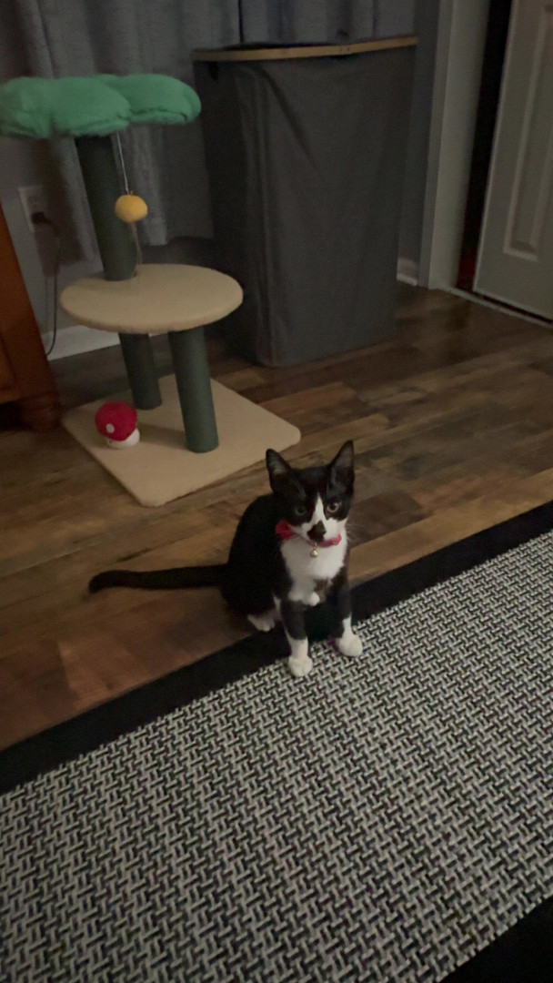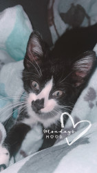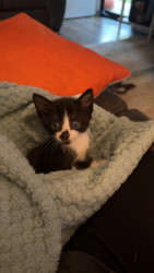 He is a 9 week old tuxedo kitty that my sil found & we lost our 13 yo tuxedo cat last year to cancer so this little boy has healed our ❤️