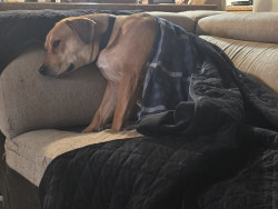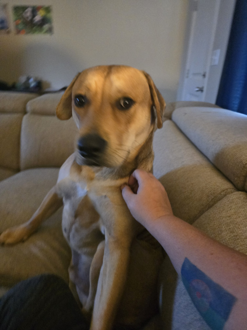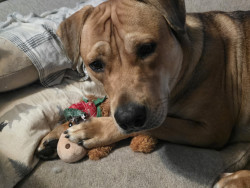 Apollo came to live with me at the rescue because his owner was fleeing an extreme domestic violence situation. Apollo is the most amazing.