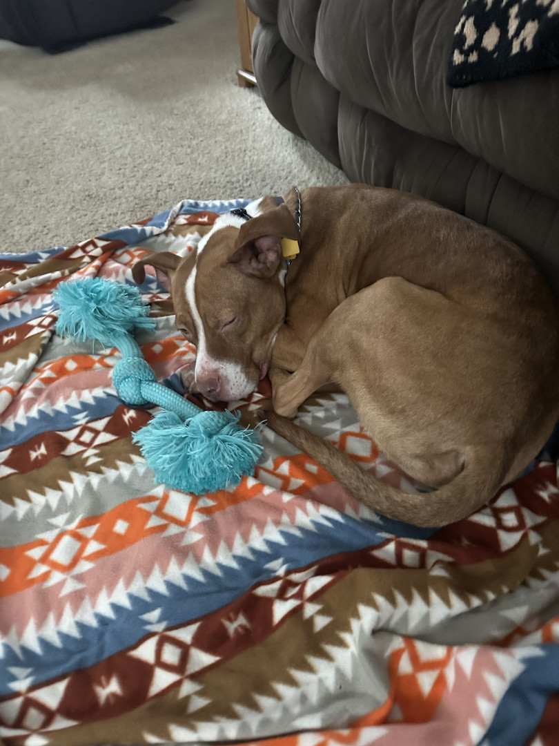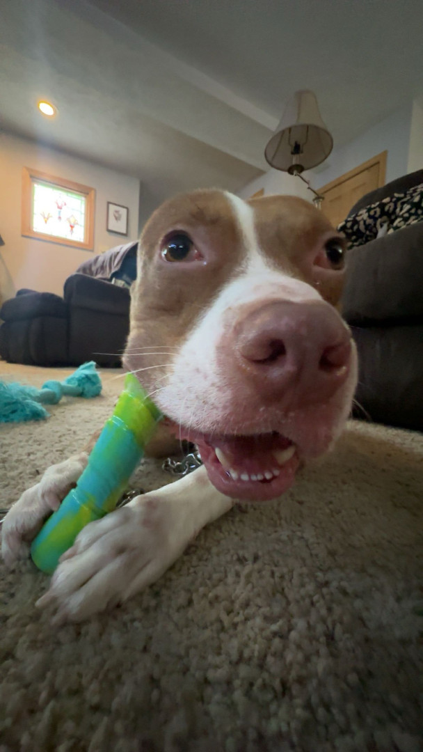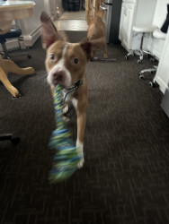 he loves his stuffed plush toys, both with & without squeakers, rope toys, & tougher chews. he loves any treat that’s chicken, beef, or peanut butter flavored, but his all time favorite treat is cheese!
