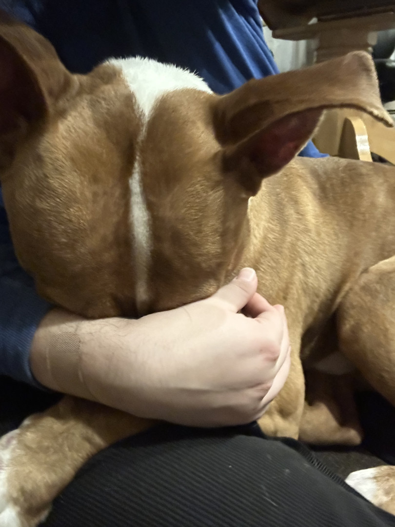 his ears - they are always standing tall, straight up & ready to listen like the good boy he is! additionally, his all around demeanor & how calm he is. he is like my little shadow, following me everywhere i go & matching my energy at all times.