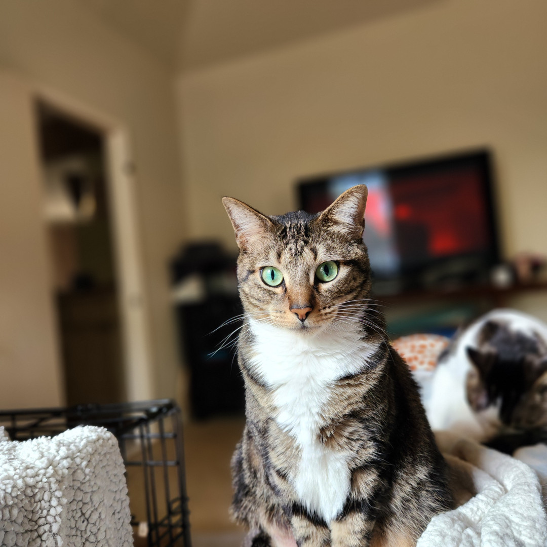 Archer represents the best of what cats are—resilient, loving, and full of personality. She went from a stray kitten to a devoted mama and cherished family member, all while keeping her gentle, playful spirit. With her striking green eyes, sweet nature, and quirky love of beauty blenders, Archer proves that America’s favorite cat doesn’t have to be born famous—just full of heart.