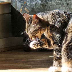Learn MoreArcher’s favorite toy is—surprisingly—beauty blenders. She hunts them with total focus, launches into dramatic chases, then proudly carries her “prey” away. After every successful capture, she calls for me and delivers her prize like a tiny hunter showing off her trophy. Her favorite treat are Squeeze Ups (chicken with catnip), which instantly turns her into a purring, treat-obsessed professional.