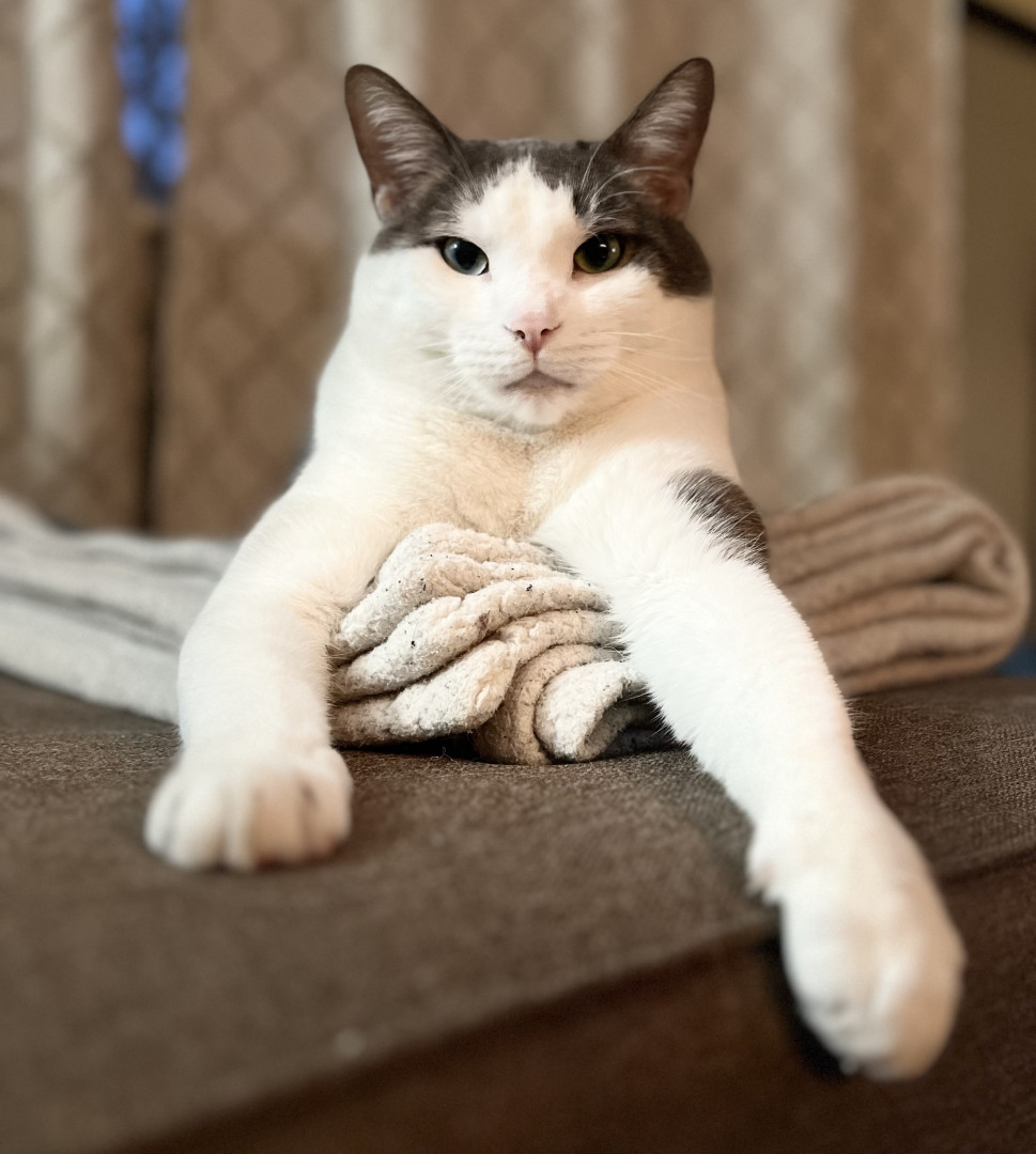 He went from being a cat no one wanted to this incredible sweet cuddly boy who is so talkative and just wants to be with people, he’s so friendly and sweet it’s impossible not to love him ❤️