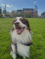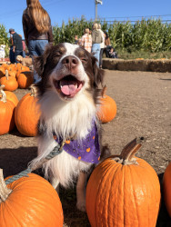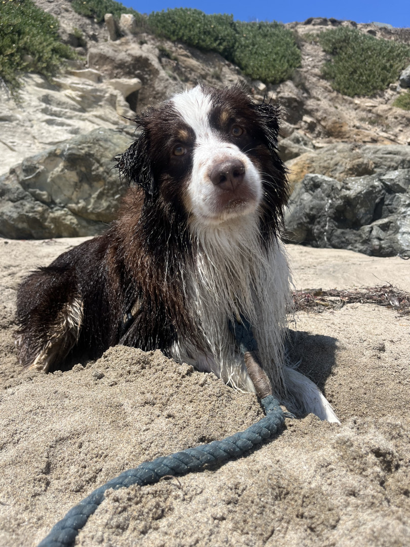 He is a sweet energetic Aussie who is insanely photogenic! Loves the ocean, anything ball shaped, and going for runs and hikes.