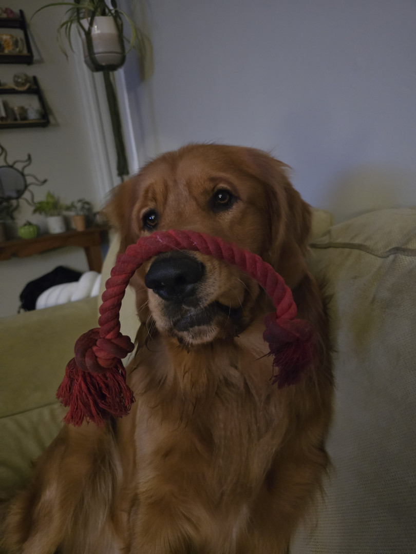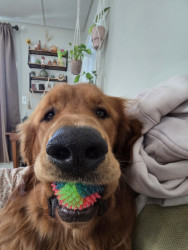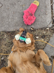 Archie is a happy go lucky goofy Golden Retriever. He loves treats, walks, snuggles, going to the dog park, and watching cartoons.