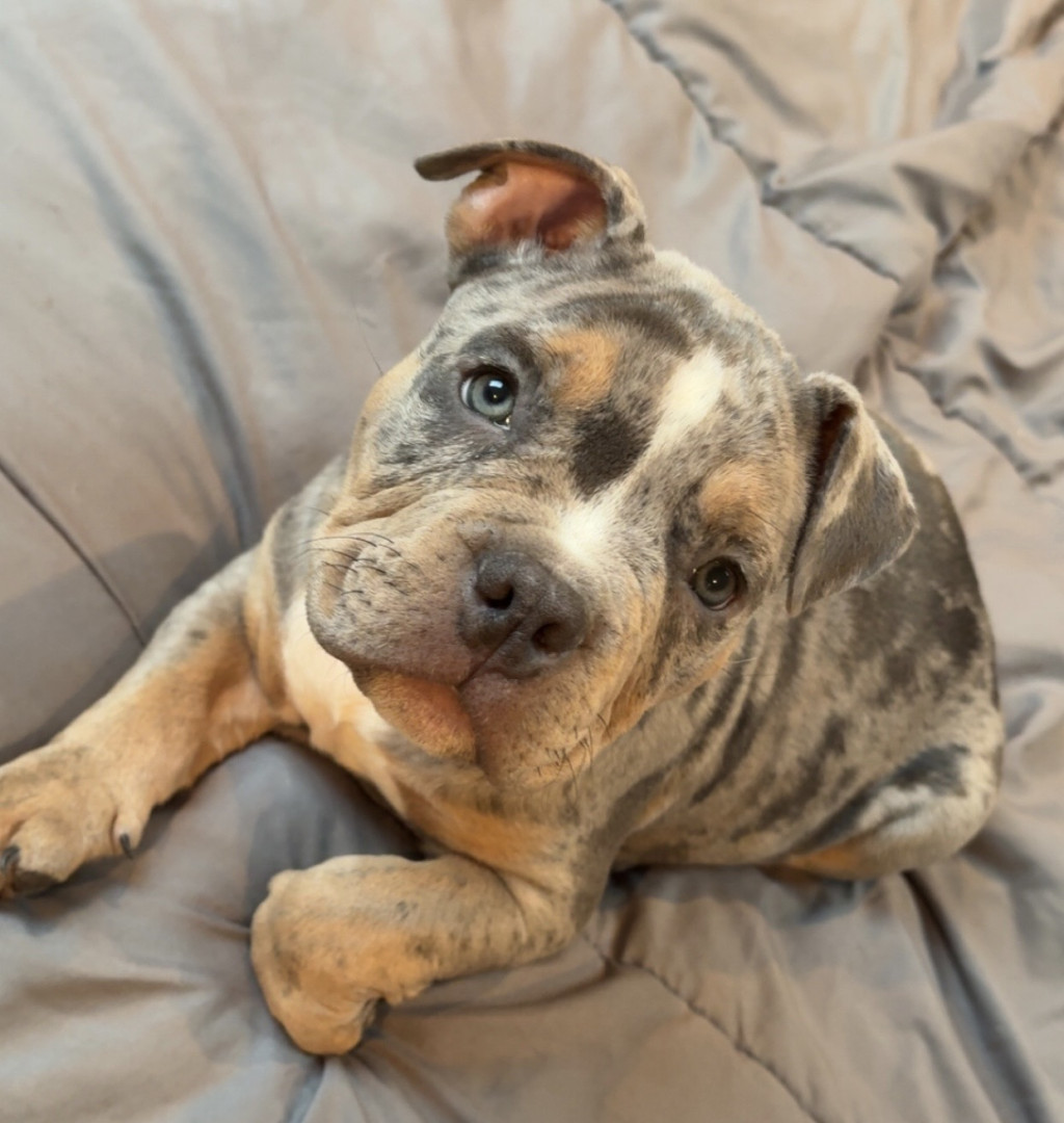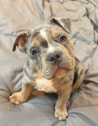 Ares is a American bully who just turned 3 months old. Full of energy and loves to play. Can sit and speak on command. Very smart and loving