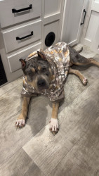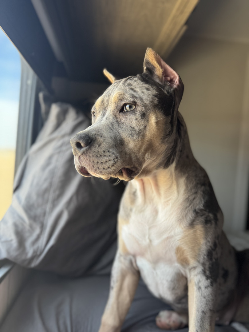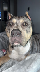 Her most unique quality is her clinginess, she is 90 pounds but insists she is a lap dog and always has to be right on top of her mom and dad.