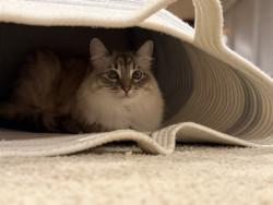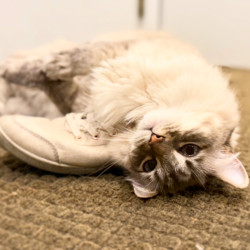 Learn MoreAria’s favorite toys are anything that even vaguely resembles string. Drag a string along the ground and it becomes irresistible - it must be pounced on. Sweatshirt and sweatpants ties are fair game. Ornaments hung with string are swiftly knocked to the ground. Shoelaces? None are safe. None. Interestingly, she isn’t particular about food at all. Aria will happily gobble up whatever her big brother leaves behind, making her the least discerning eater of any cat we’ve ever known.