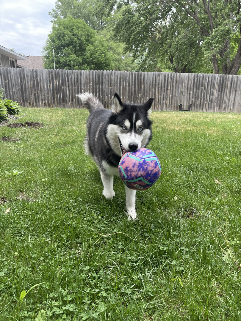 Receive Text UpdatesArielles favorite toy is her soccer ball, she loves to try and block the ball when we kick it around. Her go to treat is cheese, always knows the sound of the bag and comes running.