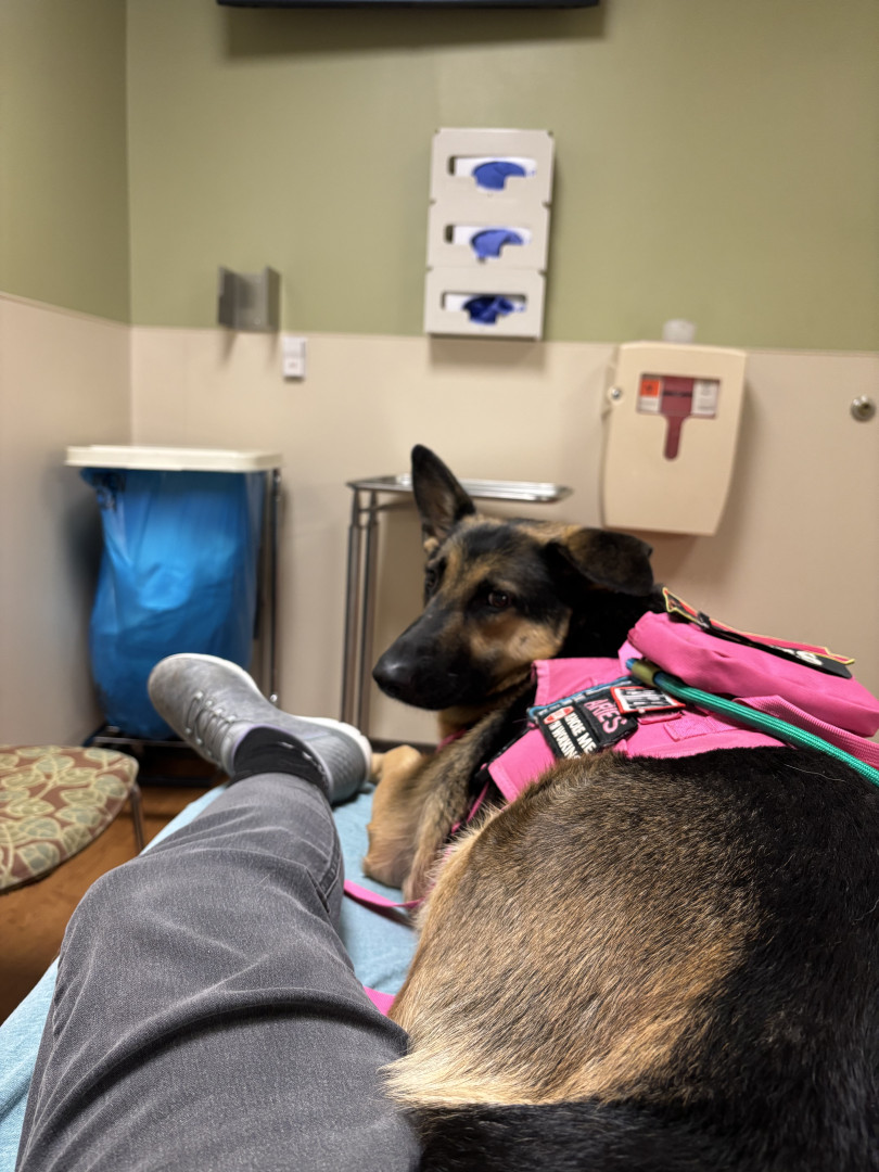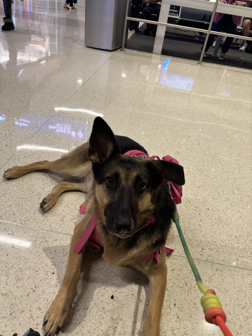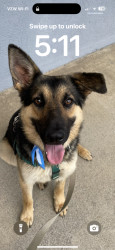 Aries is a 3 yr old German shepherd rescued from a shelter. She is trained as my service dog. She is such a gentle, loyal, & loving dog.