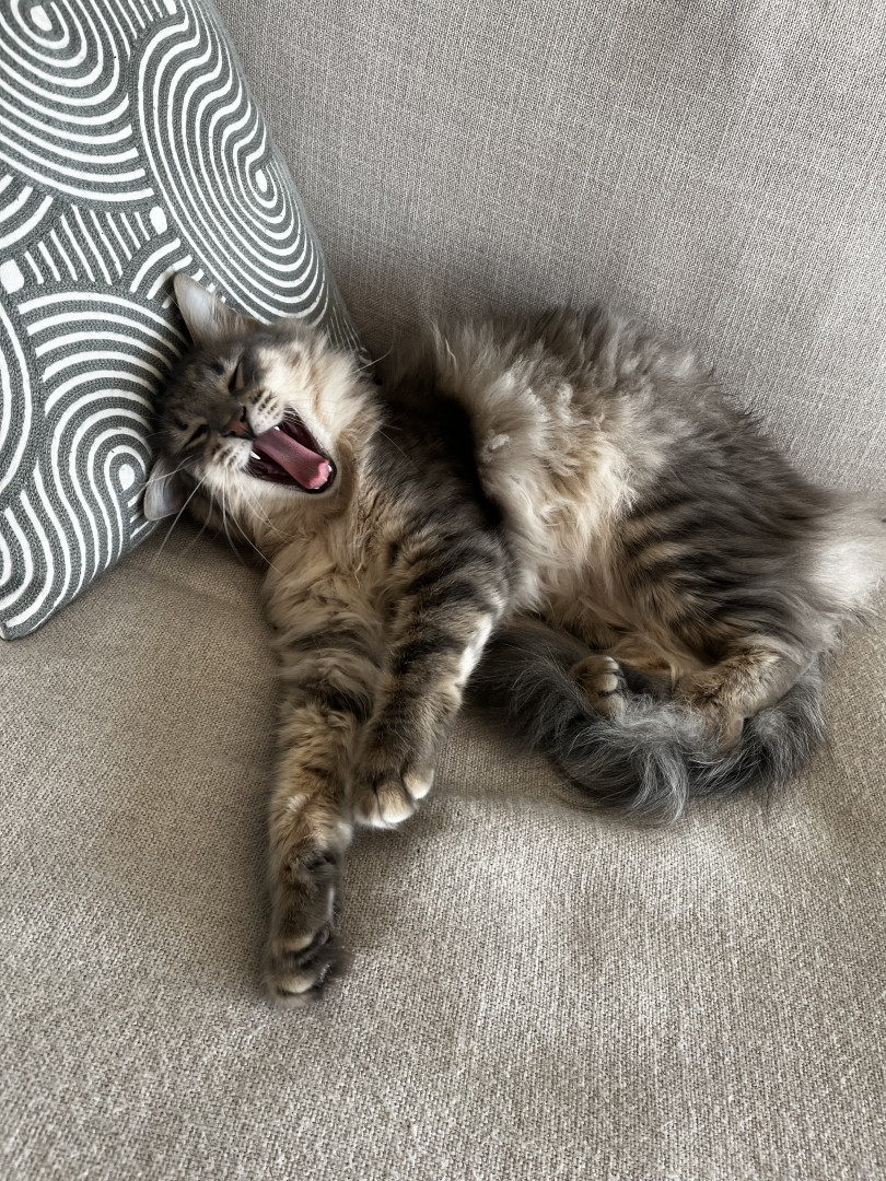 Arlo has the sweetest little obsessions — his absolute favorite toy is the one he can chase, pounce on, and proudly carry around like a trophy. No matter how many new toys he gets, he always comes back to his feather toy, ready to play at a moment’s notice. And when it comes to treats, Arlo knows exactly what he wants; the second he hears the bag of boots and barkley , he comes running, with excitement. It’s his go-to reward and the quickest way to make his day a little brighter.