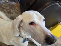 Arthur is really he's an old man he's a rescue he sit just far enough away where you can't reach him but he will ask for pets