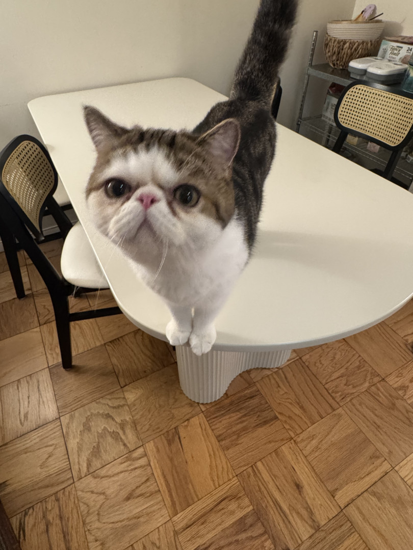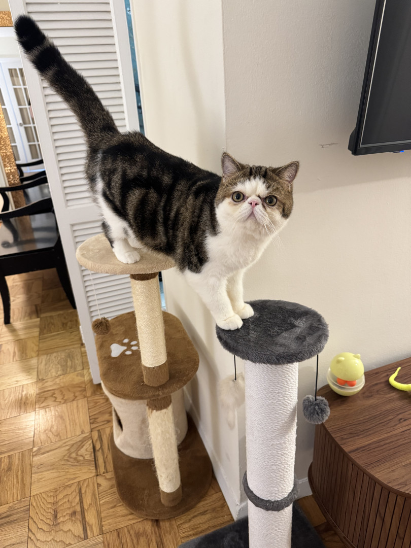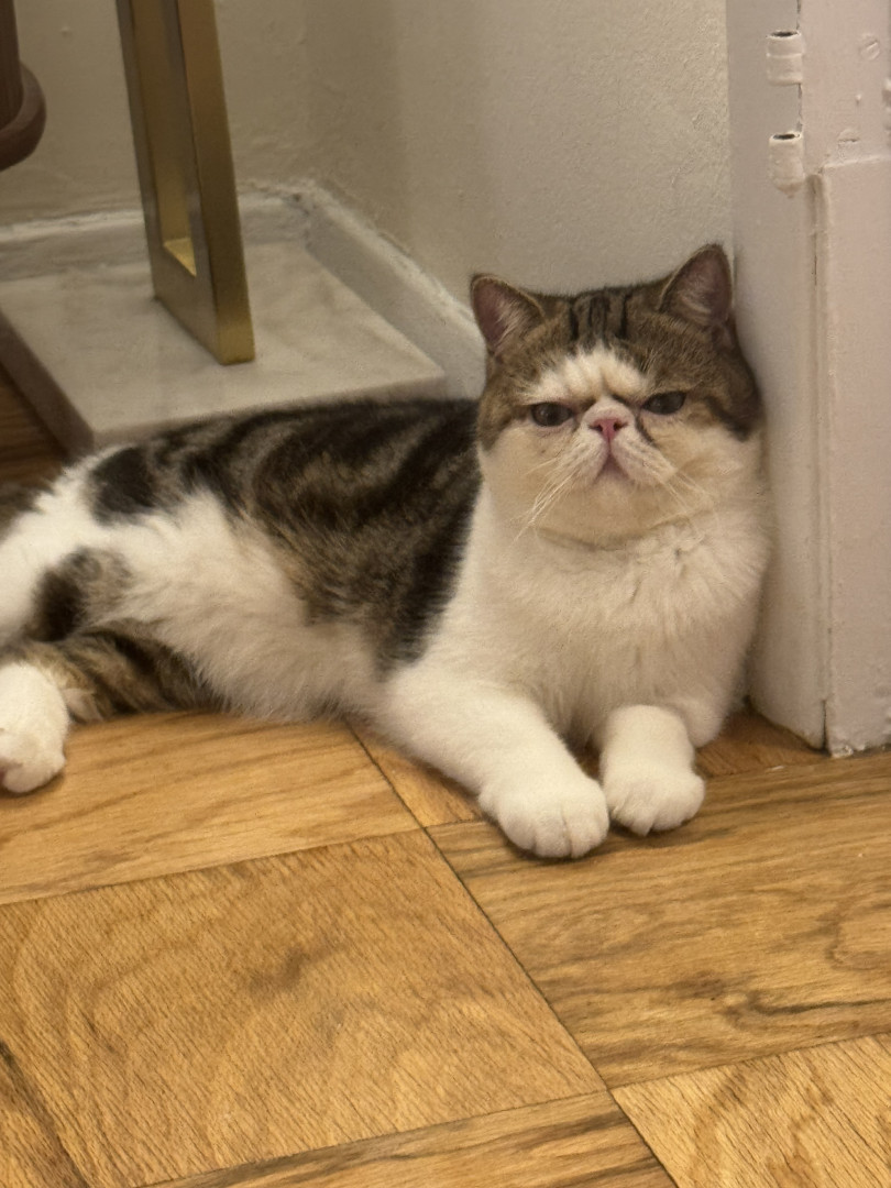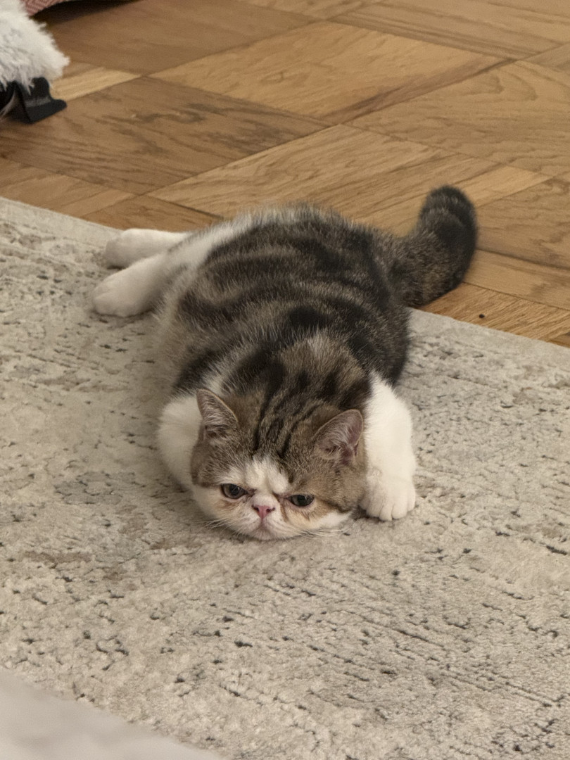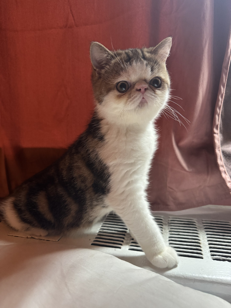 10-month old exotic shorthair brown and white tabby