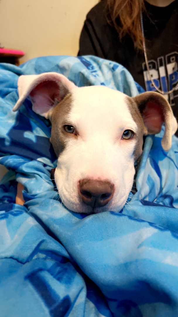 Artmis is a 8month old blue nose pit! She is full with energy! N is well behaved for a puppy!
