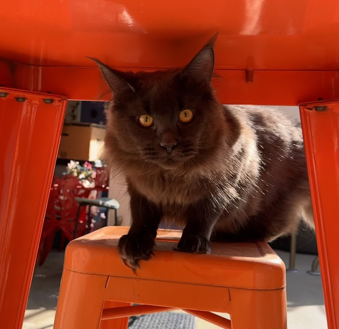 Ashiron , Maine Coon. Inquisitive orange yellow eyes, mischievous yet pulls your heart strings. Amazing squirrel like tail.