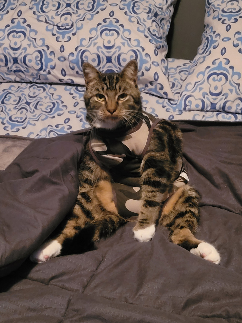 Askim is very photogenic. He has beautiful markings for a Tabby cat. He isn't a purebred, he is a rescue that loves all humans.