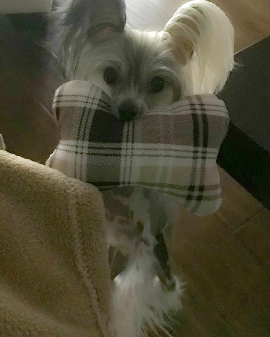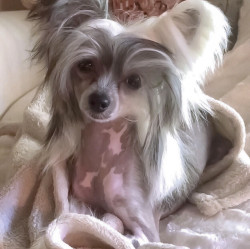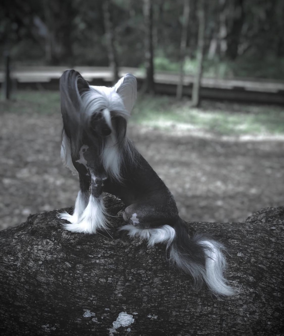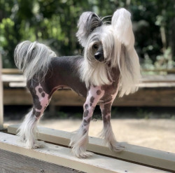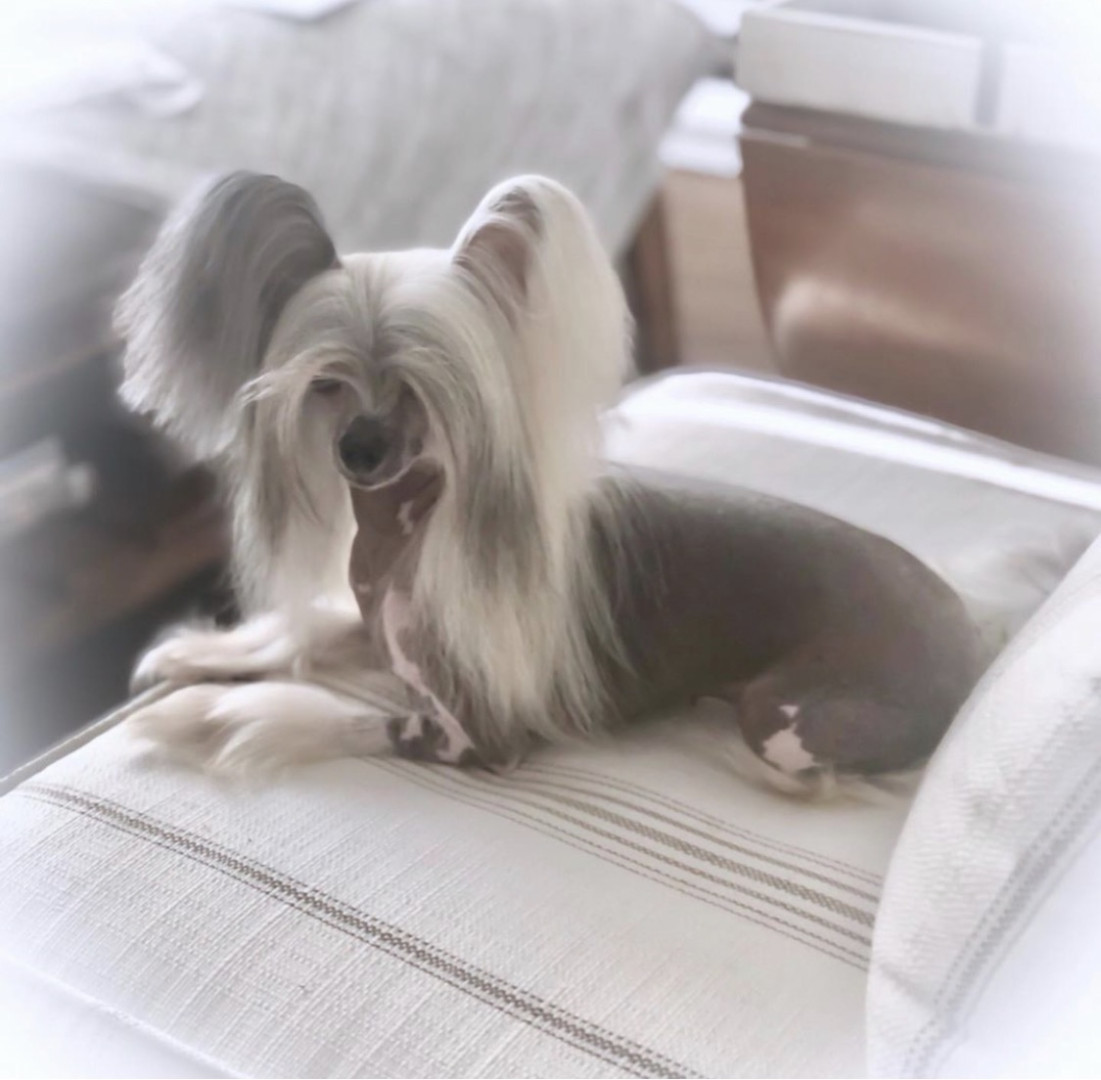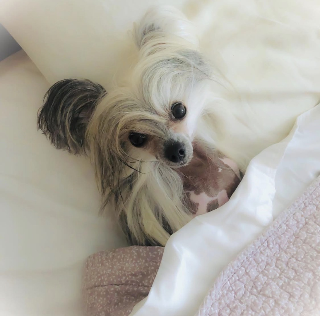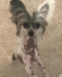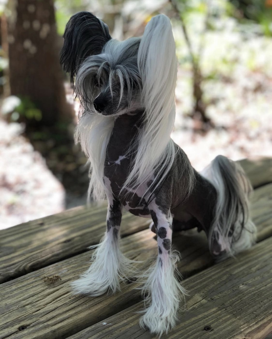 A rare mini Chinese Crested at 5lbs. Over 2500 Facebook friends from all over the world due to her rare size.