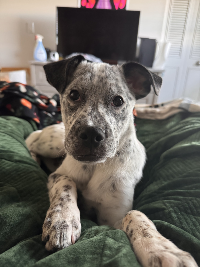This is Asta, she is a Boxer and Jack Russell terrier mix, Me and my partner adopted her from a local humane society near us!!